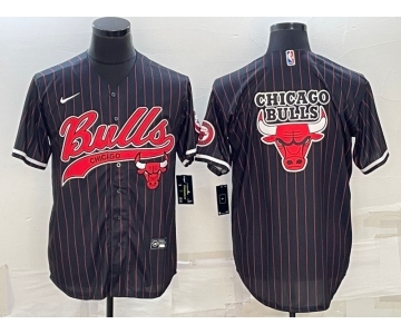 Men's Chicago Bulls Black Pinstripe Team Big Logo With Patch Cool Base Stitched Baseball Jersey