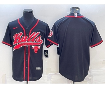 Men's Chicago Bulls Blank Black Pinstripe With Patch Cool Base Stitched Baseball Jerseys
