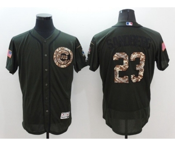 Men's Chicago Cubs #23 Ryne Sandberg Majestic Green Salute to Service Flexbase Authentic Collection Player Jersey