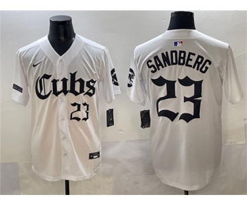 Men's Chicago Cubs #23 Ryne Sandberg White 'Gothic North Side Edition' Vapor Premier Limited Stitched Baseball Jersey