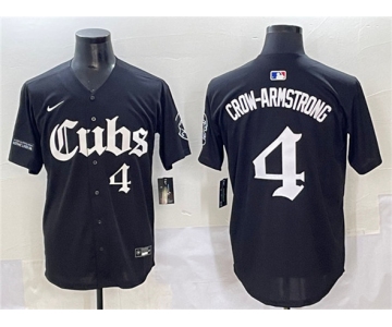 Men's Chicago Cubs #4 Pete Crow-Armstrong Black 'Gothic North Side Edition' Vapor Premier Limited Stitched Baseball Jersey