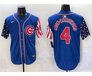 Your Position: Home>NIKE MLB Jerseys>Chicago Cubs>Men>Men's Chicago Cubs #4 Pete Crow-Armstrong Royal 2025 Independence Day Vapor Premier Limited Stitched Baseball Jersey