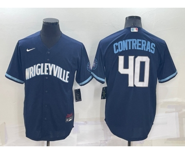 Men's Chicago Cubs #40 Willson Contreras Navy City Connect Cool Base Stitched Jersey