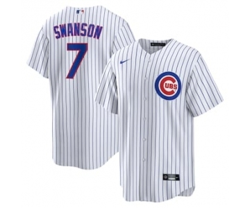 Men's Chicago Cubs #7 Dansby Swanson White Cool Base Stitched Baseball Nike Jersey