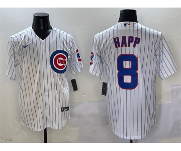 Men's Chicago Cubs #8 Ian Happ White Cool Base Stitched Baseball Jersey
