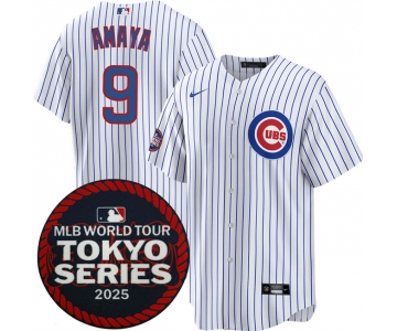 Men's Chicago Cubs #9 Miguel Amaya White 2025 World Tour Tokyo Series Home Stitched Baseball Jersey