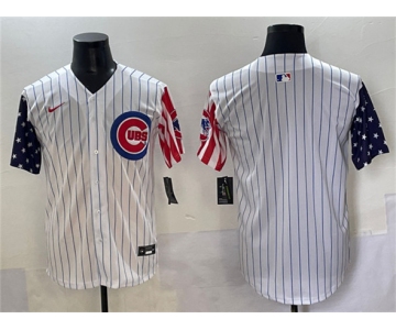 Men's Chicago Cubs Blank White Pinstripe 2025 Independence Day Vapor Premier Limited Stitched Baseball Jersey