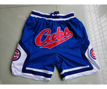 Men's Chicago Cubs JUST DON Basketball Shorts Blue Zipper Pants MLB