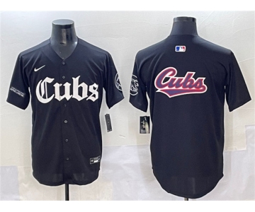 Men's Chicago Cubs Team Big Logo Black 'Gothic North Side Edition' Vapor Premier Limited Stitched Baseball Jersey