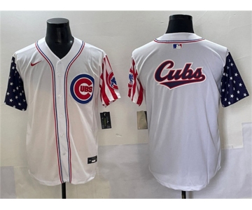 Men's Chicago Cubs Team Big Logo White 2025 Independence Day Vapor Premier Limited Stitched Baseball Jersey