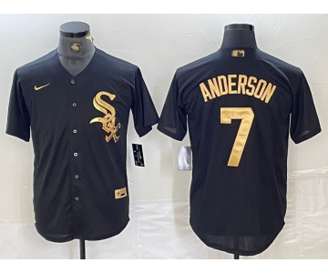 Men's Chicago White Sox #7 Tim Anderson Black Gold Cool Base Stitched Baseball Jersey