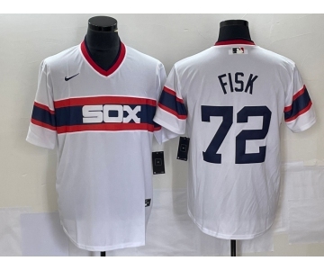 Men's Chicago White Sox #72 Carlton Fisk White Throwback Cool Base Stitched Jersey