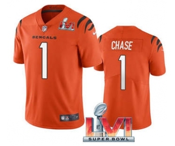 Men's Cincinnati Bengals #1 Ja'Marr Chase Orange 2022 Super Bowl LVI Vapor Limited Stitched Jersey
