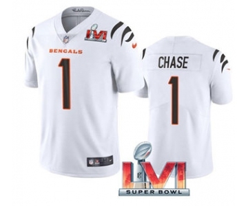 Men's Cincinnati Bengals #1 Ja'Marr Chase White 2022 Super Bowl LVI Vapor Limited Stitched Jersey