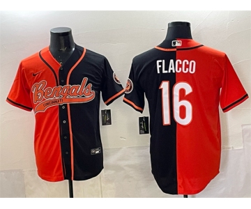 Men's Cincinnati Bengals #16 Joe Flacco Orange Black Split With Patch Cool Base Stitched Baseball Jersey