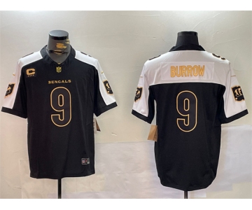 Men's Cincinnati Bengals #9 Joe Burrow Black Gold 2024 F.U.S.E With 4-Star C Patch Limited Stitched Football Jersey