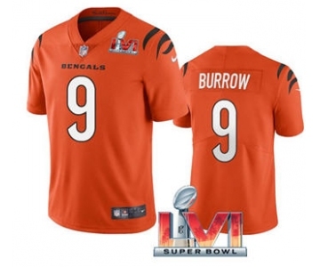 Men's Cincinnati Bengals #9 Joe Burrow Orange 2022 Super Bowl LVI Vapor Limited Stitched Jersey