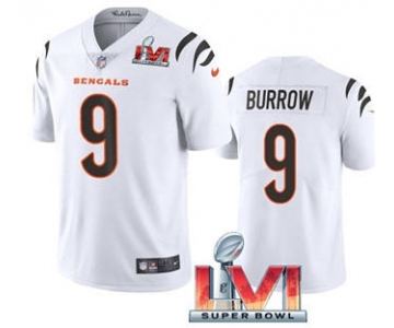 Men's Cincinnati Bengals #9 Joe Burrow White 2022 Super Bowl LVI Vapor Limited Stitched Jersey