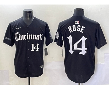 Men's Cincinnati Reds #14 Pete Rose Black 'Gothic Queen City Edition' Vapor Premier Limited Stitched Baseball Jersey