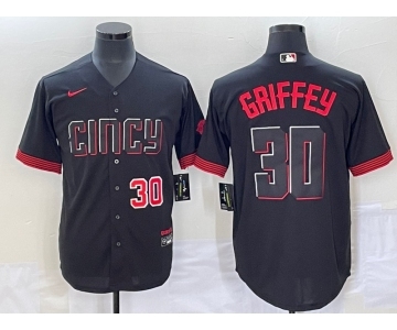 Men's Cincinnati Reds #30 Ken Griffey Jr Black 2023 City Connect Cool Base Stitched Jersey1