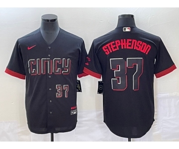 Men's Cincinnati Reds #37 Tyler Stephenson Number Black 2023 City Connect Cool Base Stitched Jersey