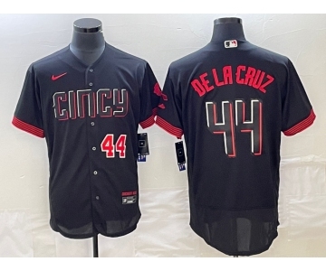 Men's Cincinnati Reds #44 Elly De La Cruz Number Black 2023 City Connect Cool Base Stitched Jersey 1
