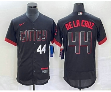 Men's Cincinnati Reds #44 Elly De La Cruz Number Black 2023 City Connect Flex Base Stitched Baseball Jersey