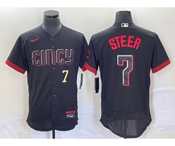 Men's Cincinnati Reds #7 Spencer Steer Black 2023 City Connect Flex Base Stitched Jersey