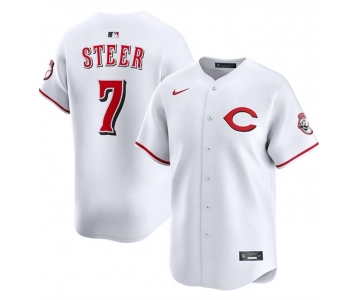 Men's Cincinnati Reds #7 Spencer Steer White 2025 Home Limited Stitched Baseball Jersey