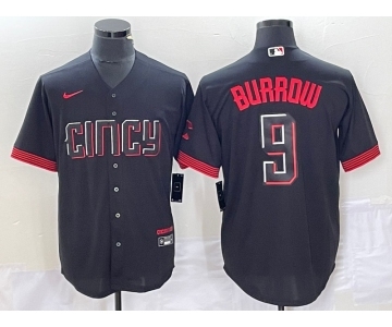 Men's Cincinnati Reds #9 Joe Burrow Black 2023 City Connect Cool Base Stitched Baseball Jersey