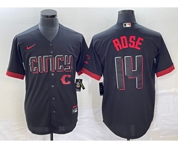 Men's Cincinnati Reds #14 Pete Rose Number Black 2023 City Connect Cool Base Stitched Jersey 1