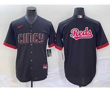 Men's Cincinnati Reds Big Logo Black 2023 City Connect Cool Base Stitched Jersey1