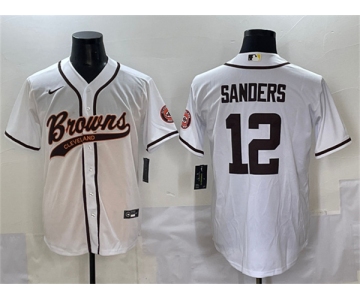 Men's Cleveland Browns #12 Shedeur Sanders White With Patch Cool Base Stitched Baseball Jersey