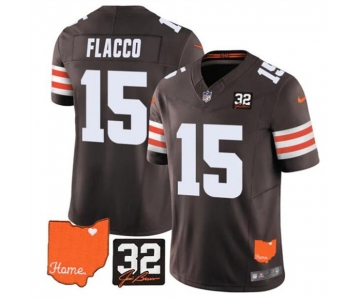Men's Cleveland Browns #15 Joe Flacco Brown 2025 F.U.S.E. With Jim Brown Memorial & Home Patch Vapor Limited Football Stitched Jersey
