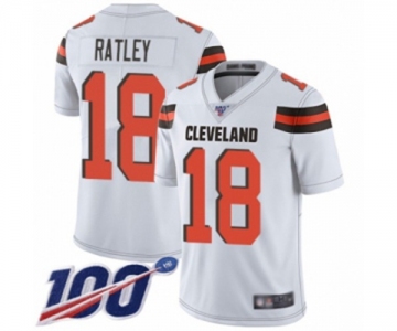 Men's Cleveland Browns #18 Damion Ratley White Vapor Untouchable Limited Player 100th Season Football Jersey