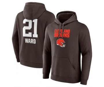 Men's Cleveland Browns #21 Denzel Ward Brown Team Wordmark Player Name & Number Pullover Hoodie