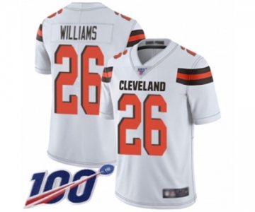 Men's Cleveland Browns #26 Greedy Williams White Vapor Untouchable Limited Player 100th Season Football Jersey