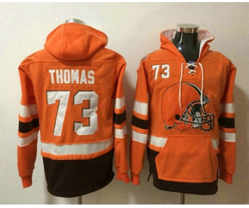 Men's Cleveland Browns #73 Joe Thomas NEW Orange Pocket Stitched NFL Pullover Hoodie