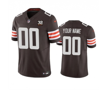 Men's Cleveland Browns Active Player Custom Brown 2023 F.U.S.E. With Jim Brown Memorial Patch Vapor Untouchable Limited Football Stitched Jersey
