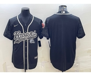 Your Position: Home>NIKE NFL Jerseys>Nike Cleveland Browns>Limited Jerseys>Men's Cleveland Browns Blank Black Reflective With Patch Cool Base Stitched Baseball Jersey
