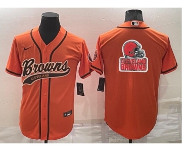 Men's Cleveland Browns Orange Team Big Logo With Patch Cool Base Stitched Baseball Jersey