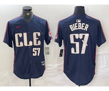 Men's Nike Cleveland Indians #57 Shane Bieber Navy Alternate Stitched Baseball Jersey