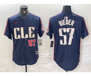 Men's Nike Cleveland Indians #57 Shane Bieber Navy Alternate 2020 Authentic Player Baseball Jersey