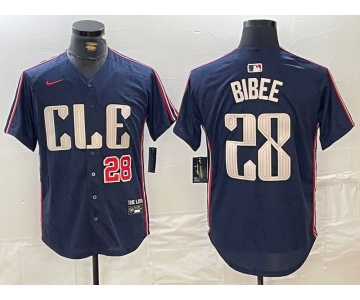 Your Position: Home>NIKE MLB Jerseys>Cleveland Guardians>Men>Men's Cleveland Guardians #28 Tanner Bibee Number Navy 2024 City Connect Limited Stitched Jersey