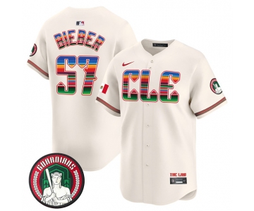 Men's Cleveland Guardians #57 Shane Bieber Cream Mexico Vapor Premier Limited Stitched Baseball Jersey