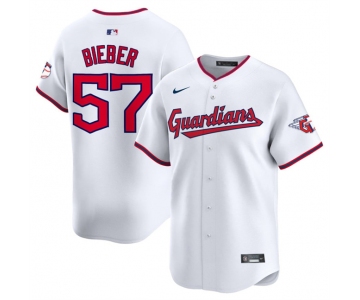 Your Position: Home>NIKE MLB Jerseys>Cleveland Guardians>Men>Men's Cleveland Guardians #57 Shane Bieber White Home Limited Stitched Baseball Jersey