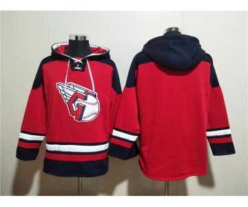Men's Cleveland Guardians Blank Red Lace-Up Pullover Hoodie