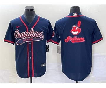 Men's Cleveland Guardians Navy Team Big Logo Cool Base Stitched Jersey