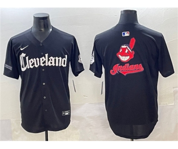 Men's Cleveland Guardians Team Big Logo Black Gothic Vapor Premier Limited Stitched Baseball Jersey