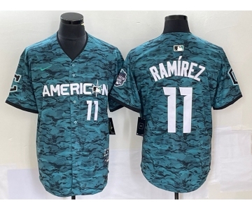 Men's Cleveland Indians #11 Jose Ramirez Number Teal 2023 All Star Cool Base Stitched Jersey